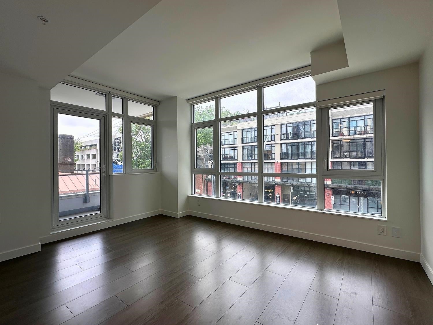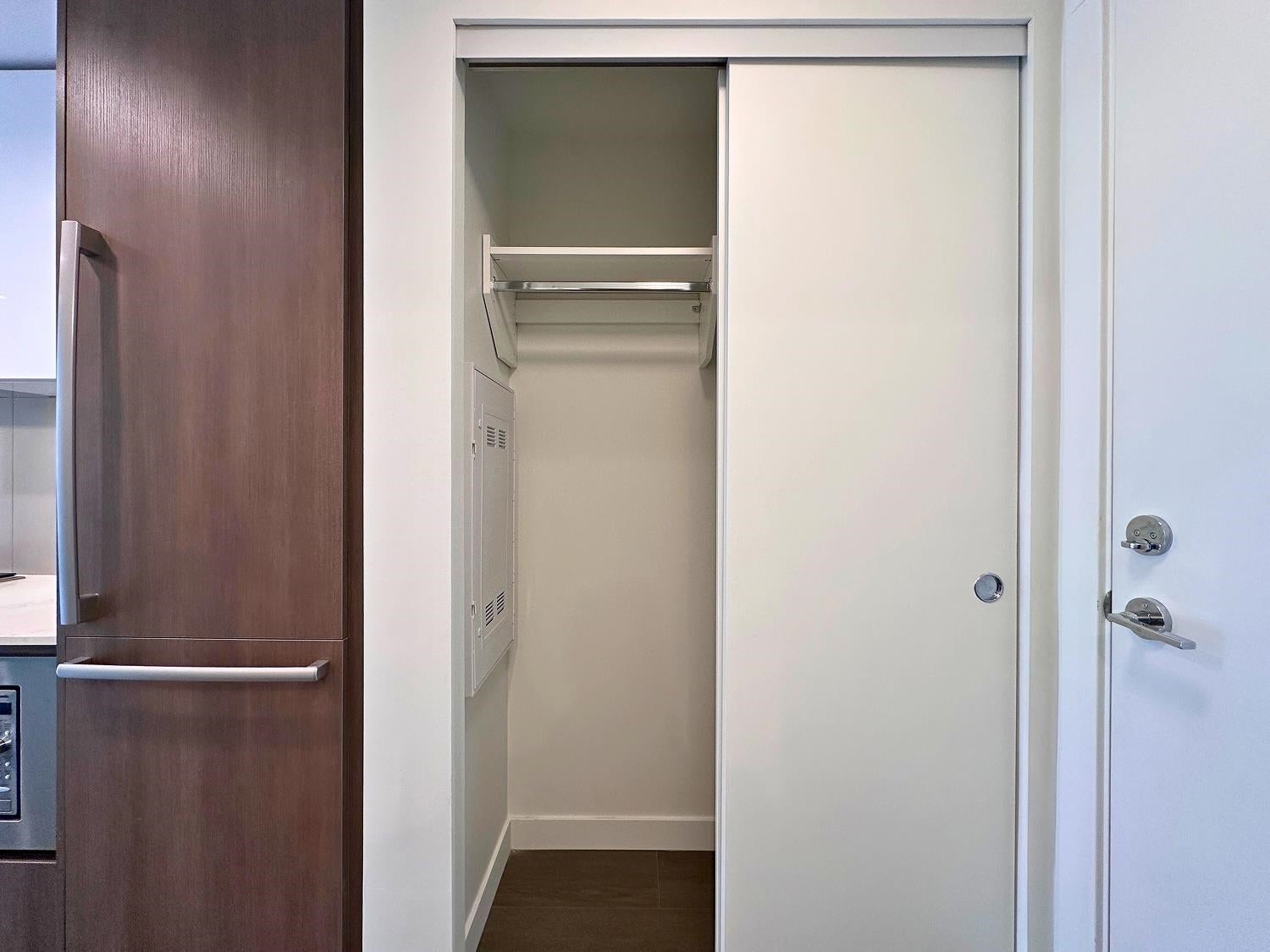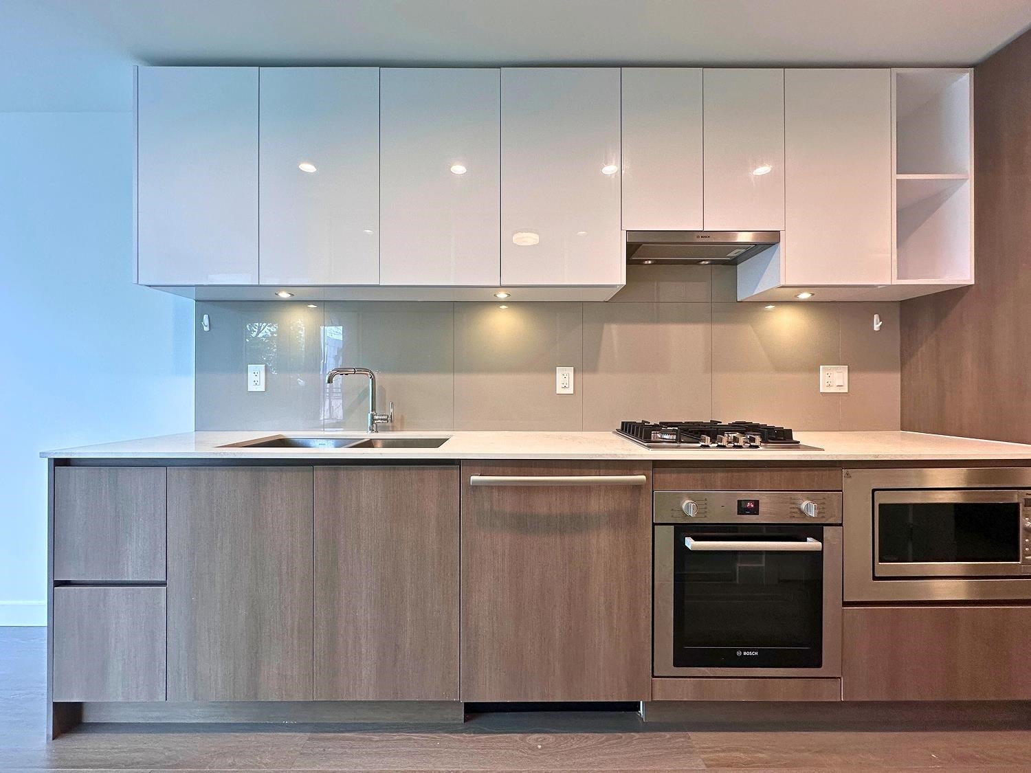 Welcome to 618 Carnarvon, a corner unit, one bedroom home in downtown New Westminster with A/C. West facing with welcoming warm afternoon sun through large windows and a private balcony. The open layout features a sleek kitchen with Bosch appliances, quartz countertops, and soft-close cabinets. Laminate flooring throughout the home, easy to keep clean. Perfect for first time buyers or investors seeking a low-maintenance home in a prime location. Storage locker included. Just a three-minute walk to Columbia and New Westminster SkyTrain stations, with Douglas College, cafés, restaurants, and riverside paths nearby. Residents enjoy access to a fitness centre, rooftop green space, kids' play area, and community lounge.