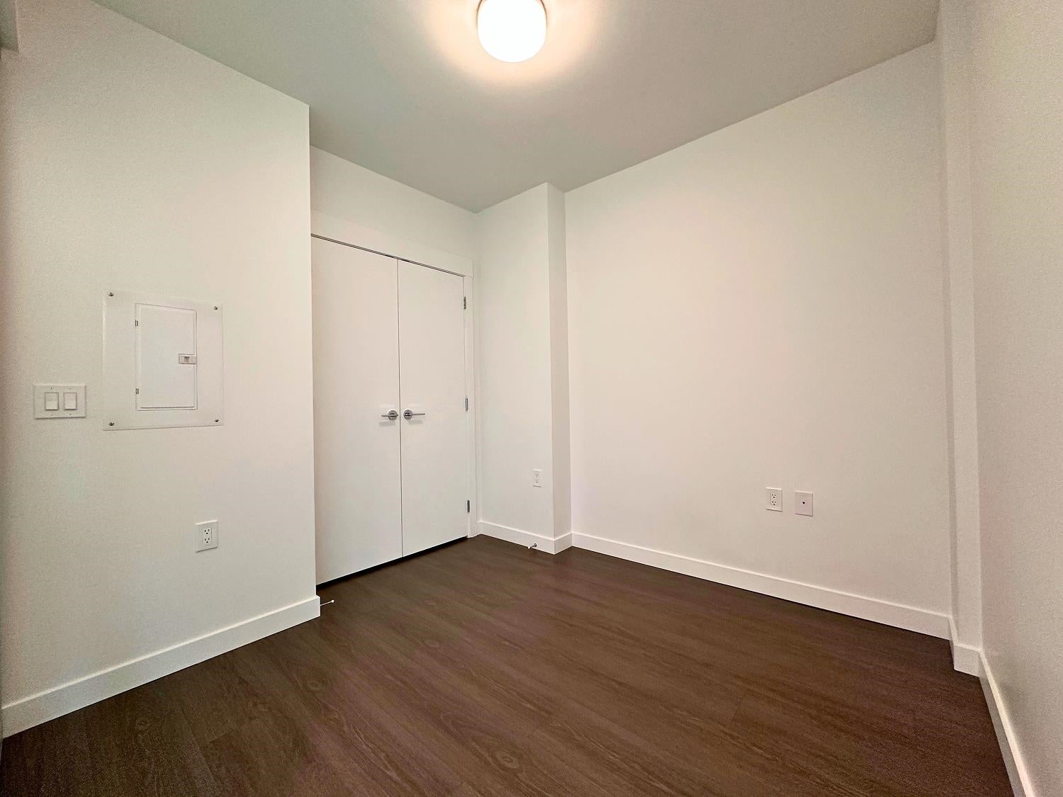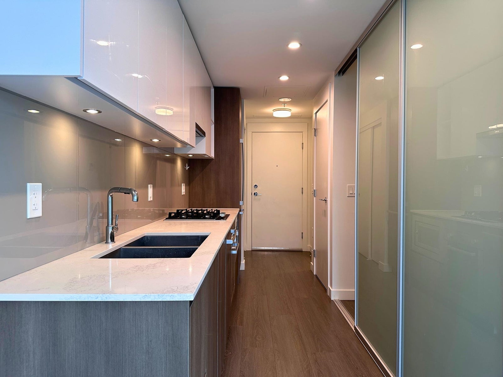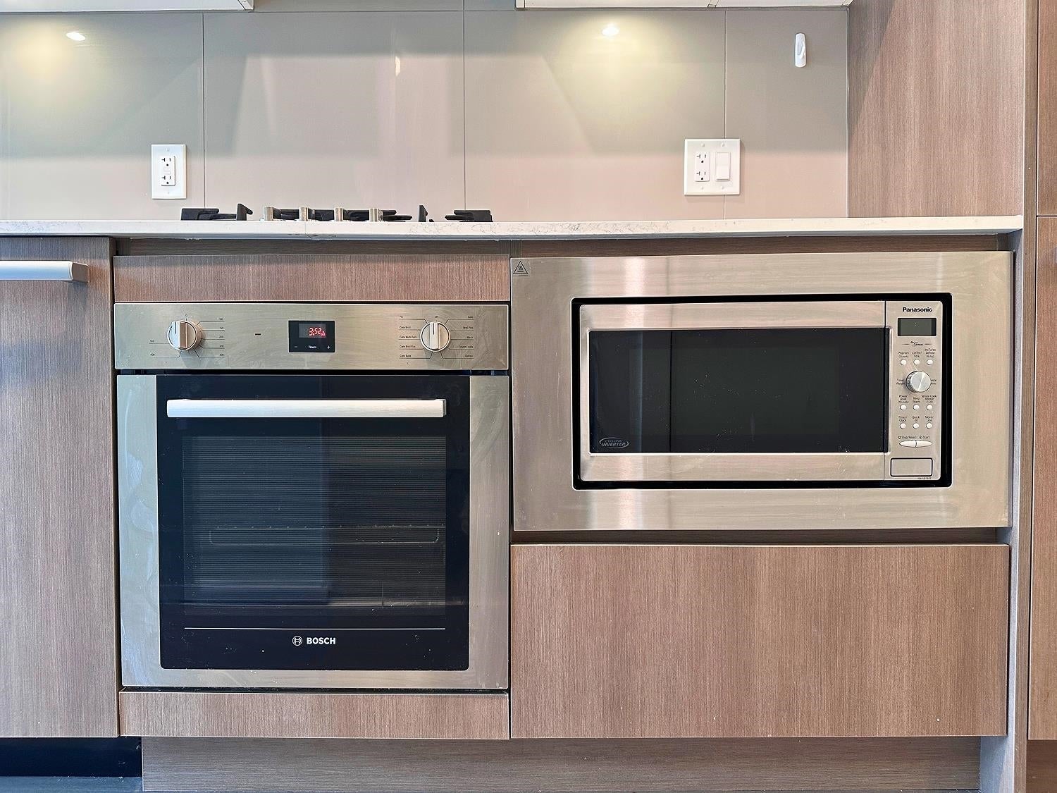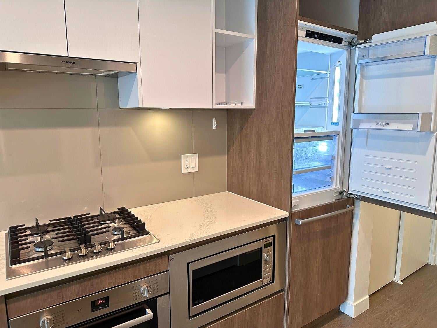 Welcome to 618 Carnarvon, a corner unit, one bedroom home in downtown New Westminster with A/C. West facing with welcoming warm afternoon sun through large windows and a private balcony. The open layout features a sleek kitchen with Bosch appliances, quartz countertops, and soft-close cabinets. Laminate flooring throughout the home, easy to keep clean. Perfect for first time buyers or investors seeking a low-maintenance home in a prime location. Storage locker included. Just a three-minute walk to Columbia and New Westminster SkyTrain stations, with Douglas College, cafés, restaurants, and riverside paths nearby. Residents enjoy access to a fitness centre, rooftop green space, kids' play area, and community lounge.